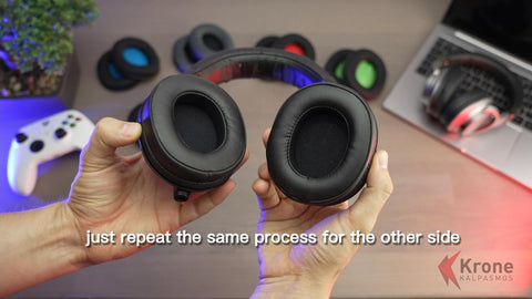 Die Ohrpolster sind um den seitlichen Schlitz des Kopfhörers gewickelt, Sie können die alten Ohrpolster direkt ganz herausziehen.
